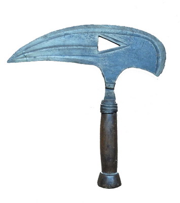 鸟头斧主要发现于加蓬和刚果(布)西部。鸟头代表鸦犀鸟的头,嘴喙大而下弯。鸦犀鸟极受当地人尊崇,充满了神秘的魔力。这种鸟头斧多用于成人仪式。
