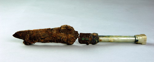 此剑是目前已知的经科学检测认定的我国人工冶铁的最早实例。商周时期,青铜质工具被用于钻孔技术。这把玉柄铁剑设计构思巧妙,将套接、卯合、锻造、镶嵌等技术发挥得淋漓尽致。