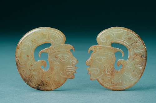 春秋以后,镂空技术被大量应用于片状器物雕刻中。有学者认为这两件玉饰在造型纹饰上与台北故宫博物院藏龙山文化人面纹玉圭较为相似,可能是新石器晚期的遗存,后在春秋时期被加工改雕的。
