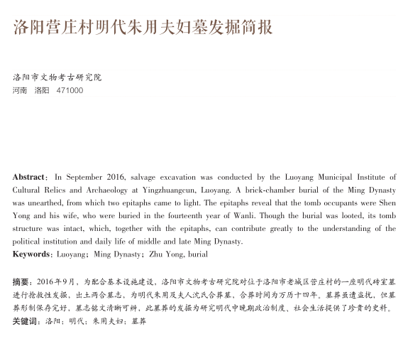 洛阳营庄村明代朱用夫妇墓发掘简报