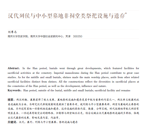 汉代列侯与中小型墓地非祠堂类祭祀设施与遗存