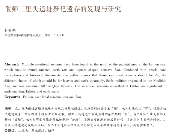 偃师二里头遗址祭祀遗存的发现与研究