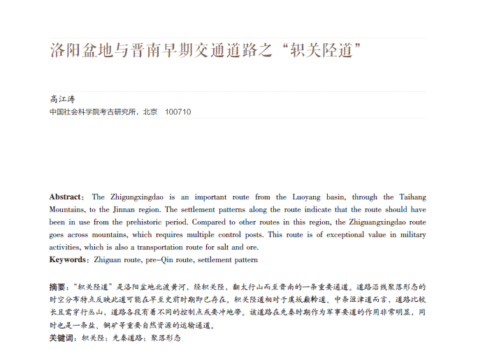 洛阳盆地与晋南早期交通道路之“轵关陉道”
