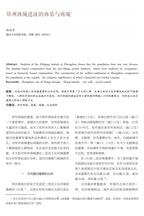 郑州商城遗址的商墓与商城