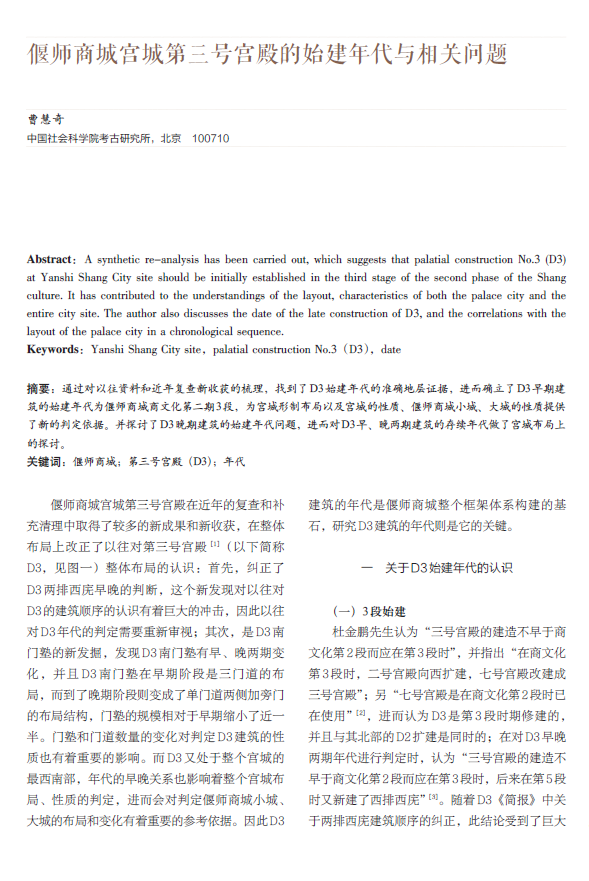 偃师商城宫城第三号宫殿的始建年代与相关问题