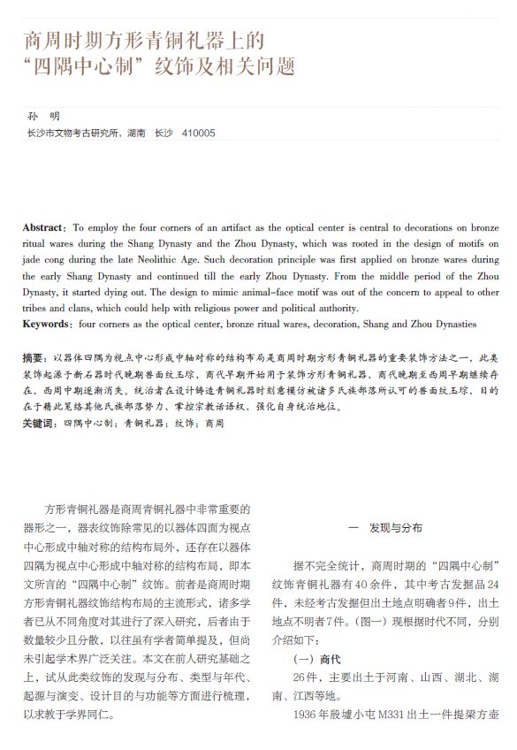 商周时期方形青铜礼器上的“四隅中心制”纹饰