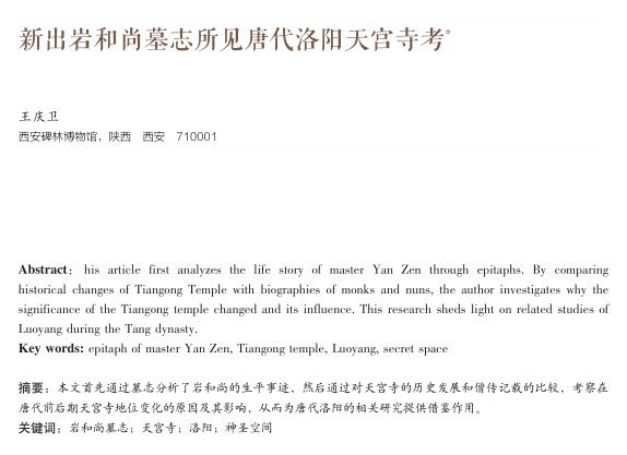 新出岩和尚墓志所见唐代洛阳天宫寺考