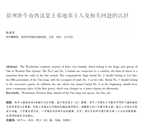徐州卧牛山西汉楚王墓地墓主人及相关问题的认识