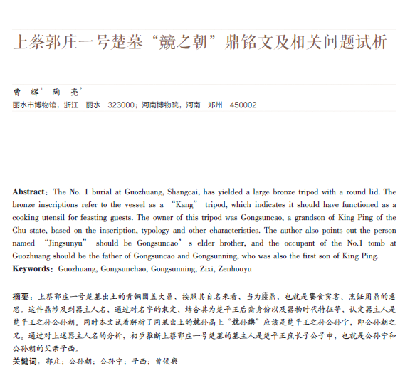 上蔡郭庄一号楚墓“競之朝”鼎铭文及相关问题试析