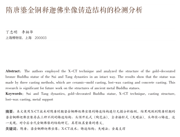 隋唐鎏金铜释迦佛坐像铸造结构的检测分析