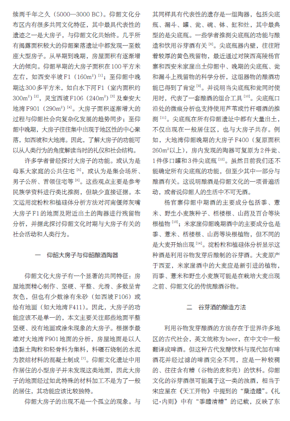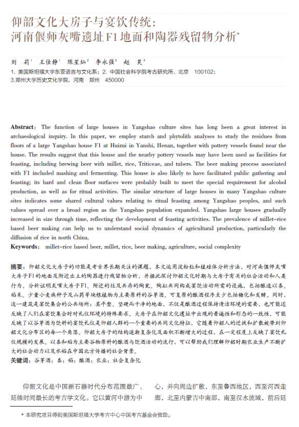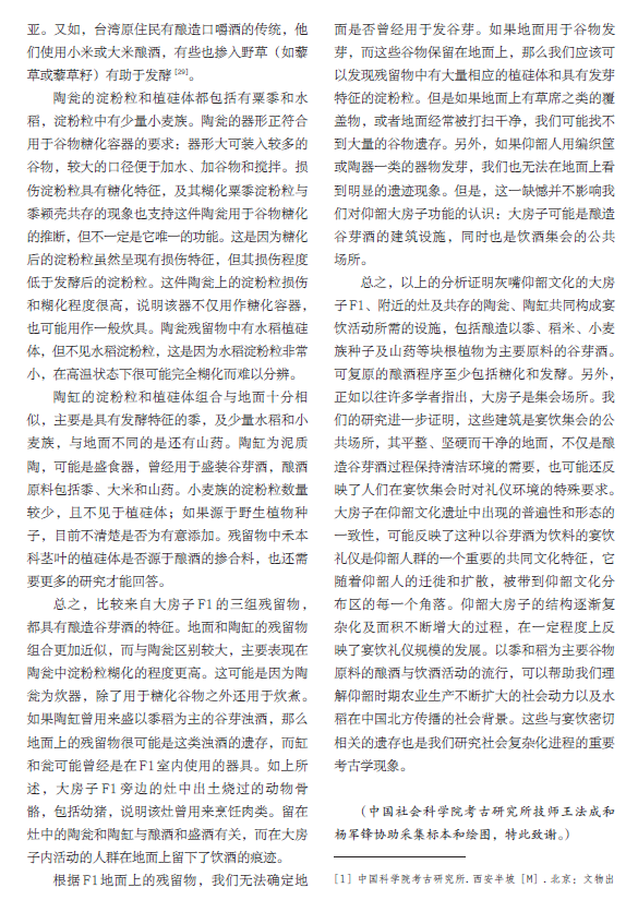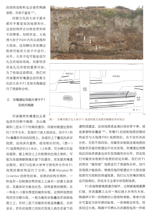 仰韶文化大房子与宴饮传统:河南偃师灰嘴遗址F1地面和陶器残留物分析
