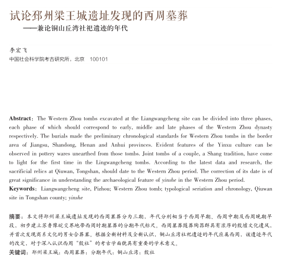 试论邳州梁王城遗址发现的西周墓葬