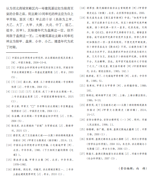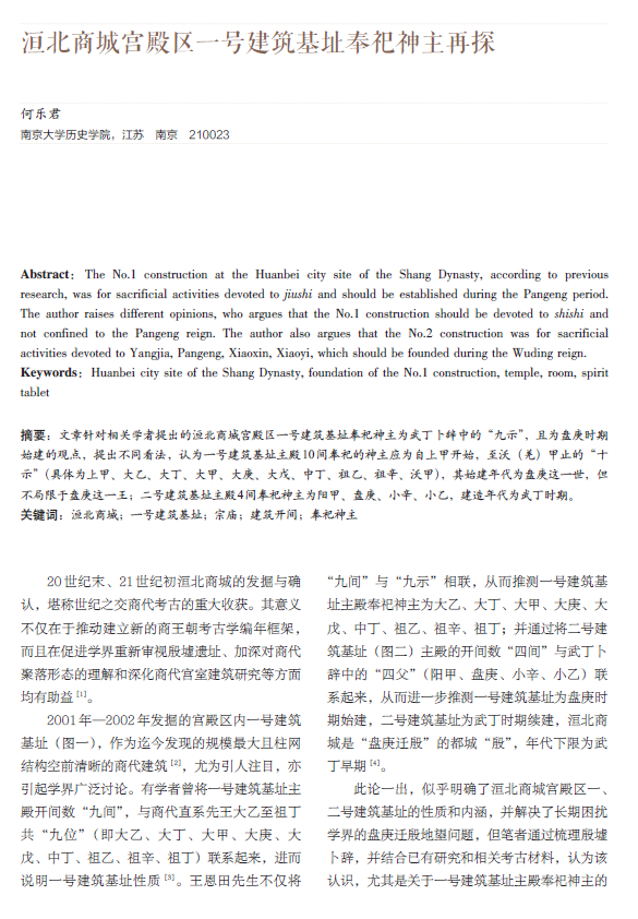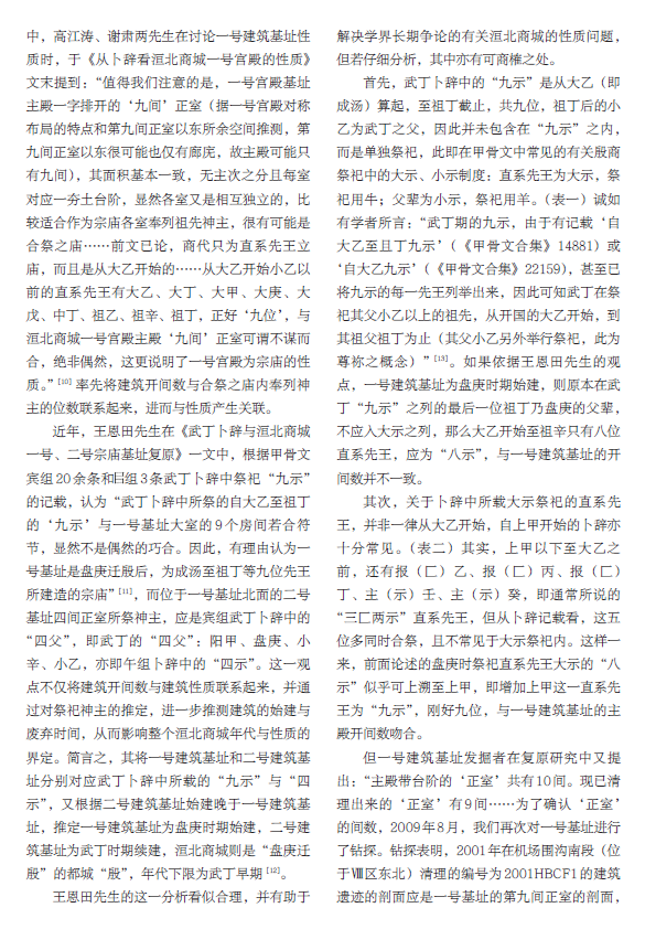 洹北商城宫殿区一号建筑基址奉祀神主再探
