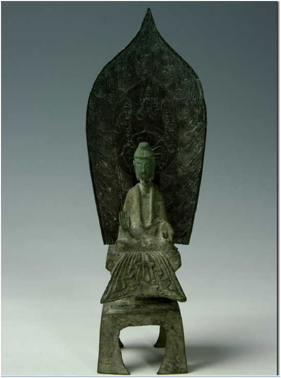 隋唐时期社会繁荣、政经强盛、文化交流频繁,为佛教造像艺术发展提供了良好的社会环境。此时造像艺术不再模仿外来的艺术风格,转向个性化、理想化发展,佛像面相丰满端庄、体态优美浑厚、衣纹流畅自然、手法写实细腻,使造像艺术达到鼎盛。
