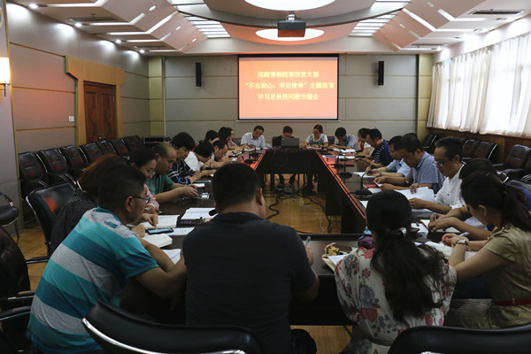 马萧林认真听取了八名党员干部在本次“不忘初心、牢记使命”主题教育活动的检视的问题、整改措施等。首先肯定了大家对照《党章》《条例》等查找的问题。同时指出,本次检视问题环节中,也存在检视问题不够深刻、原因分析不够明确,对策建议不够具体等问题。他说,目前正处在博物馆繁荣发展的时期,希望党员同志们抓住本次“不忘初心、牢记使命”主题教育活动的大好时机,提高自我的政治高度,增强“四个意识”,立足本职工作,深入钻研业务,为单位的发展起到引领作用。