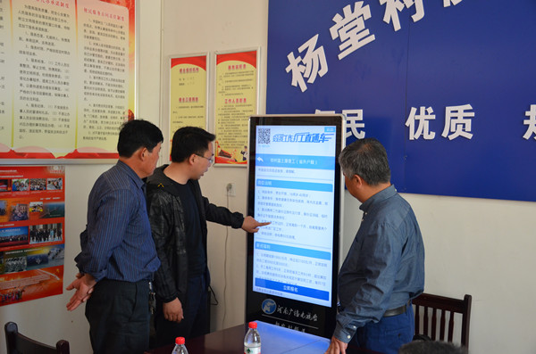 驻村第一书记向纪委书记葛聚朋介绍“打工直通车”