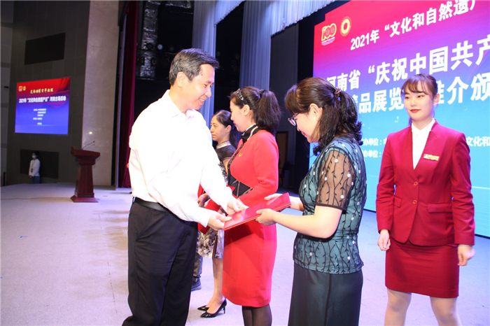 中共河南省委常委、宣传部部长江凌出席活动并颁发河南省“庆祝中国共产党成立100周年精品展览”推介证书
