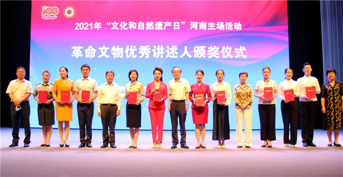 活动现场,中共河南省委宣传部、省文物局聚焦建党百年,集中表彰推介了69项河南省“庆祝中国共产党成立100周年精品展览”和 35名河南省革命文物优秀讲述人;以“讲好红色故事 赓续精神血脉”为主题,组织启动河南“红色文物说”讲述宣传活动,依托革命文物资源,组织全省优秀讲解员和志愿者,面向社会集中讲述中国革命的伟大历程和感人事迹,展现中原儿女的梦想与追求、情怀与担当。当天首场讲述活动,4名讲解员从一件件文物、一个个故事入手,集中讲述大别山精神、焦裕禄精神、红旗渠精神、长征精神,吸引众多观众。