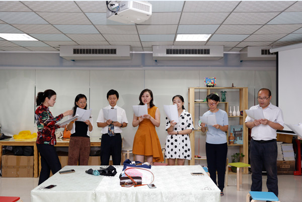 “诵读传承文明、经典浸润人生!”在热烈的掌声中,院党委副书记丁福利为当天的训练作了最后点评并为朗诵队下一步活动开展提出了建议。他说,今天是朗诵队成立后经过精心准备举行的第一次集中训练,大家热情高昂、团结互助、虚心学习,效果很好,开场很好!接着,丁书记向大家提了四点建议:一是树品牌。他说,我们要尽快给朗诵队确定一个响亮的名字!朗诵队不仅是朗诵爱好者的俱乐部,更要力争将其打造成我院文明创建工作中的一个拳头、特色品牌。二是勤练习。可采取个人独立、固定分组、自由结合等多种方式,互帮互学,共同提高。三是有收获。广大队员要继续发扬不怕苦、不怕累的精神,在奉献中得到快乐、学到知识,收获友谊!四是早亮相。队员们可以在各党支部、党小组集中学习及微党课上展示朗诵作品;国庆节前夕要集中举办一次展演活动,向院党委和全体党员群众汇报,为新中国庆生,为新时代喝彩!