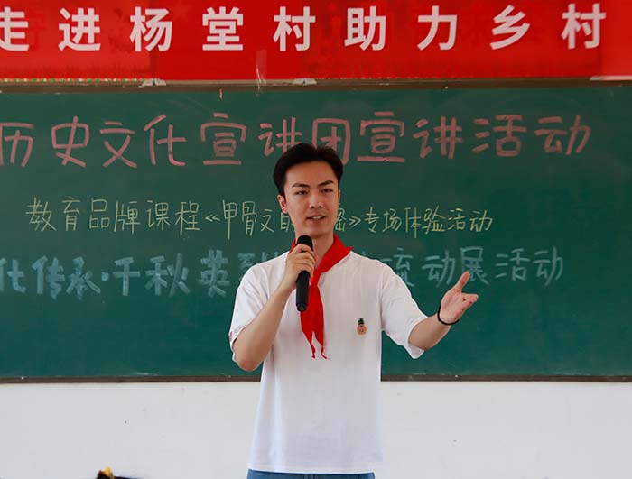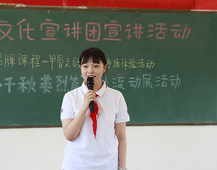 在阵阵热烈的掌声中,宣讲团五位成员依次闪亮登场,为孩子们讲述了5位中原革命烈士的英雄故事。从“战斗英雄孙占元”到“狼牙山五壮士宋学义”,从“中原赤子白山英魂抗日民族英雄杨靖宇”到“智勇双全张星江”,还有世界第八大奇迹的总设计师吴祖太……一场场宣讲选材用心、思想深邃、形式新颖、内容丰富,加上宣讲团成员“专业”而生动的表达,打动了现场一个个淳朴可爱的孩子,将红色的种子深深播洒在他们的心田。