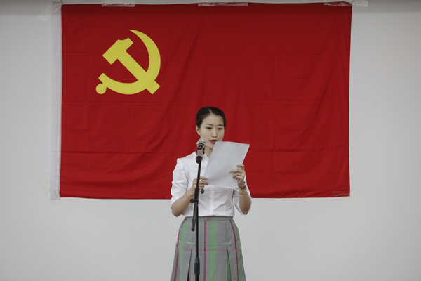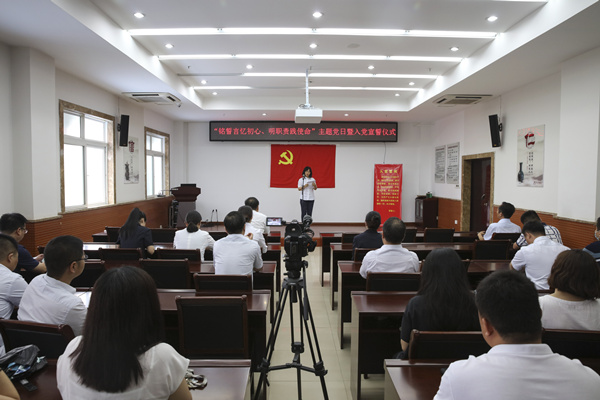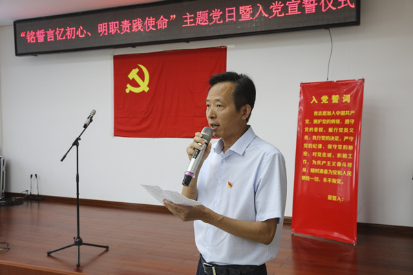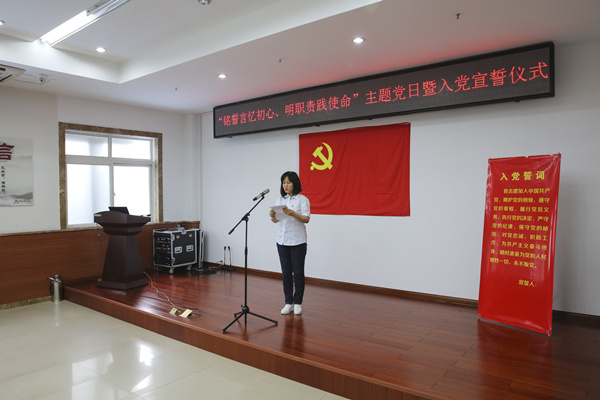仪式在雄壮的国际歌中拉开序幕,新老党员在鲜红的党旗下举起右手,庄严宣誓。随后,新党员代表王文析发言,她表示,要在今后的学习工作中,时刻以党员的标准严格要求自己,以优秀党员为榜样,做一名合格党员。老党员代表张延红同志在发言中向党员讲述了自己自入党以来的亲身感受,勉励全体党员牢记誓词,努力学习、勤奋工作,在工作和生活中争先创优,树立党员模范形象。