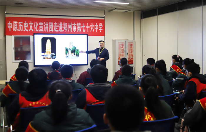 中原历史文化宣讲团优秀志愿者“河南省最美志愿者”冯勇走进学校,为同学们送去“河南老家系列之郑州我的故乡”主题宣讲,生动介绍每个人身边的历史遗迹,激发大家“学雷锋、爱家乡、爱祖国”的青春活力,坚定理想信念、厚植爱党爱国情怀。