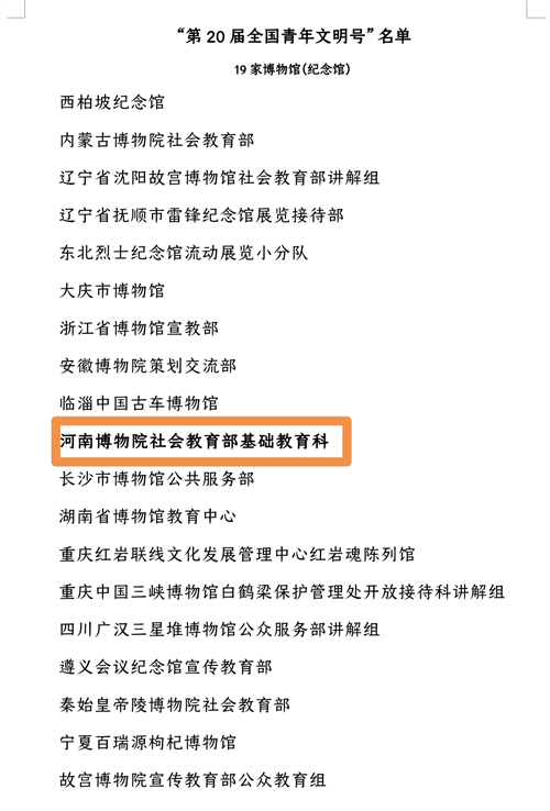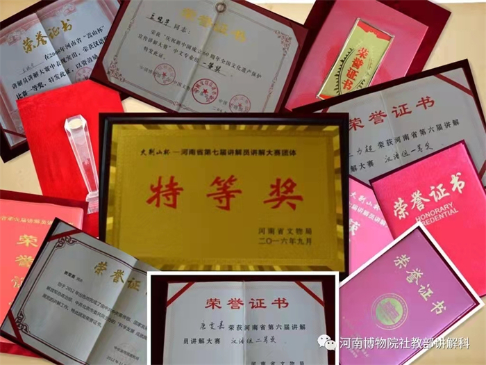 曾多次荣获全国讲解员大赛一等奖、河南省讲解员大赛一等奖、河南省讲解员大赛团体一等奖、河南省“五一劳动奖章”、“青年文明号”、全国“三八红旗集体”、“全国城镇妇女巾帼文明示范岗”、河南省“五一劳动模范奖章集体”等荣誉称号。