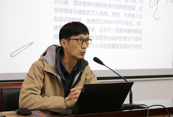 主讲人围绕2021年国家网络安全宣传周的主题“网络安全为人民,网络安全靠人民”,结合工作实际、生活场景,从网络安全理念提升,网络威胁识别,网络安全应对策略三个角度,对网络诈骗、邮箱安全、WIFI使用安全三个主题进行了深入浅出的讲解。进一步增强了我院干部职工的网络安全意识,提高了网络安全防范技能。