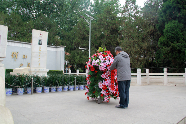 在焦裕禄烈士墓前,向人民的好干部敬献花篮,举行庄重的拜谒仪式。