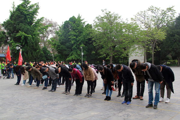 青年职工们首先来到了焦裕禄干部学院。在焦裕禄烈士墓前,向人民的好干部敬献花篮,举行庄重的拜谒仪式,向焦裕禄烈士之墓三鞠躬,并缓行一周,表达对焦裕禄同志的缅怀和敬仰之情。