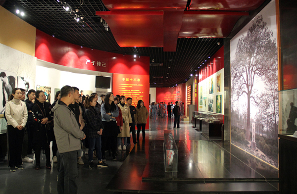 在焦裕禄纪念馆内,大家跟随讲解员,聆听着焦裕禄当年带领兰考人民战风沙、斗内涝、治盐碱的感人事迹。观看早期的珍贵史料和图片,了解焦裕禄的光荣事迹。一幅幅图片、一件件实物、一个个故事,生动地展示了焦裕禄同志全心全意为人民服务,鞠躬尽瘁、死而后已的光辉一生。在焦裕禄干部学院门前,瞻仰焦桐,并与焦裕禄亲手种下的泡桐合影。