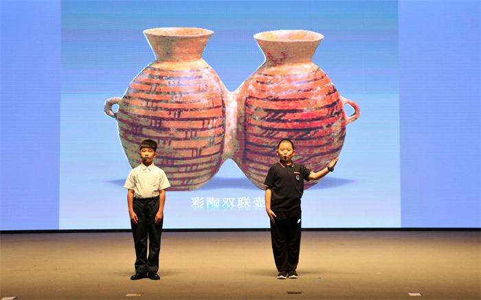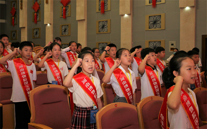 启动仪式上,往届“国宝讲解小明星”优秀代表们不仅主持仪式,还为在场的孩子们作生动的示范讲解。院长马萧林、党委副书记丁福利为参加本届活动的小朋友们颁发“国宝讲解小明星”绶带,随后,本届活动的参与者们集体郑重宣誓,要做文明的守护者、文化传承者。