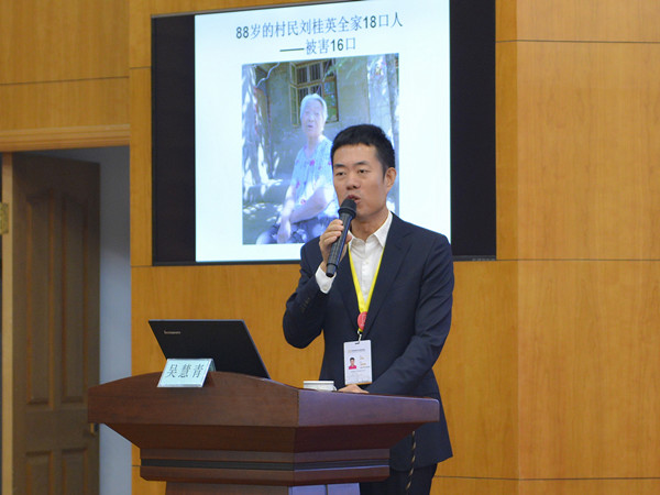 宣讲分为上下两场,上半场是由志愿者吴慧青以《我们的抗战——郑州•1941》为题,讲述了1941年日本侵略中国、施暴郑州的历史事实, 以及郑州地区军民奋勇抵抗的英勇事迹。大量的史实照片、影像、亲历者的讲述,把所有人的思绪带回到那个战火纷飞的年代。当志愿者吴慧青介绍到郑州人都熟悉的地名——古荥镇上河王村、广武镇王顶村、庙李镇杲村……都发生过惨无人道的屠杀、英勇惨烈的抗敌时,现场观众都强忍着心中怒火,流下滚烫的泪水。