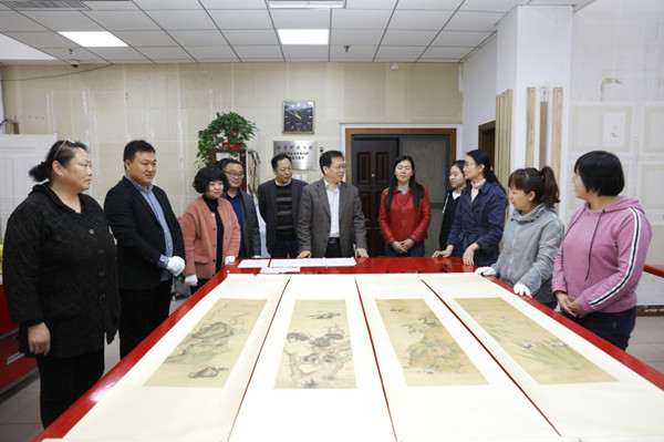 马萧林院长陪同河南省文物局局长田凯参观指导修复成果展