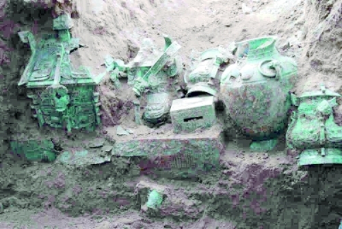本报西安7月8日电 20世纪70年代西安临潼几位村民一镢头挖出秦始皇兵马俑,震惊世界。30多年后的今天,在宝鸡市渭滨区石鼓镇石嘴头村,同样是村里的村民,在挖掘房屋地基时,一“斗子”下去,竟挖出了大批商周时期的国宝重器,震惊了世人。