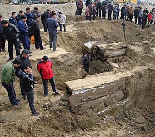 2月24日,泰州城区春兰路工地发现三口明代棺木,两口棺木内仅剩下一堆尸骨和部分衣服。3月1日,泰州博物馆打开了第三口棺木,惊奇地发现了女性墓主人保存完好,眉毛清晰可见,脚踝部甚至还有弹性。但目前墓主人的身份还是谜。
