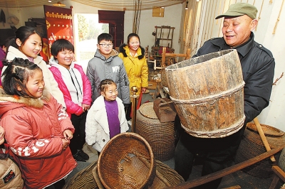 2月5日,鄢陵县马坊镇“忆苦思甜”博物馆内,村民为孩子们讲解馆藏实物,让他们通过参观、互动等方式了解农耕文化、丰富寒假生活。牛书培 摄