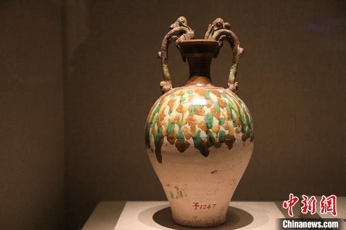 图为唐代时期的文物三彩双龙尊。 邓小强 摄