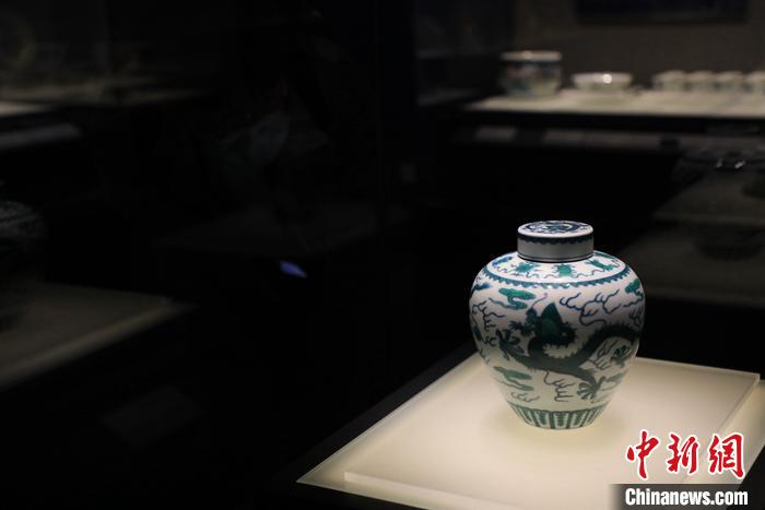 图为清代文物斗彩云龙纹瓷盖罐。 邓小强 摄