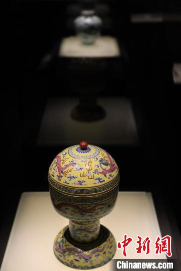 图为清代时期的文物黄釉粉彩云龙纹瓷豆。 邓小强 摄