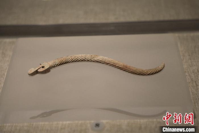 图为战国时期文物白玉龙首绞丝纹佩。 邓小强 摄
