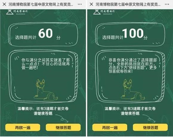 而“中原文物网上有奖知识竞答”七年的发展历程同时也是博物馆活动演变的一个缩影。在博物馆与公众长时间的交流过程中,博物馆一方面强调知识传播的重要性,另一方面开始适应公众的需求寻求形式上的突破,将知识传播更加立体化、多元化。事实证明,博物馆一直寻求的突破收获了大量好评,未来,我们依旧期待着博物馆在活动方面带给我们更大的惊喜。