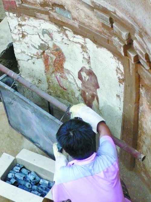 洛阳考古人员历时1月揭取4幅晚唐五代时古墓壁画