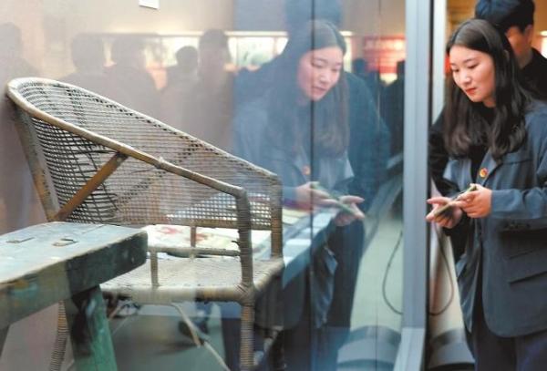 11月28日,参观者在“人民呼唤焦裕禄”展览上观看展品。新华社发