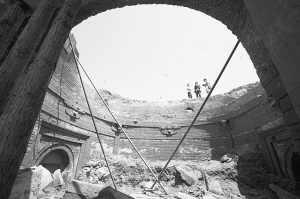 “这是墓葬前庭的耳室。整个墓葬南北长66米。封土直径34米,由内、外两圈组成,十分独特。地下部分由墓道、前庭、前甬道、前室、后甬道、后室组成,加上侧室及耳室,目前发现墓室总数达12个,迄今前庭发掘接近尾声,前庭东耳室发掘完毕。”考古队员魏曙光告诉记者,发掘目前进入重要阶段,墓葬整个结构渐渐清晰。