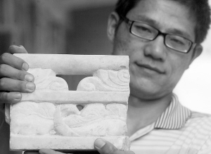 田庄古墓的两个墓室也令考古队兴趣浓厚,魏曙光说一般唐代墓葬多数是单室墓,“唐朝皇室墓葬才是双室墓。光看前后墓室的规格,可见墓主人身份不凡”。值得一提的是,前后墓室都是仿木结构的砖室墓,有砖雕斗拱等。记者还看到出土的部分汉白玉构件,除了雕刻精美的纹路,还贴有赤铜色的金箔,不难想象当年这座大墓建成时是如何的金碧辉煌。对此张春长表示,“曲阳是享誉世界的雕刻之乡,田庄古墓用到的汉白玉等石材来自当地,雕刻风格也有曲阳地方特色。这座墓葬的发现对于研究雕刻、建筑、葬俗等有积极意义”。