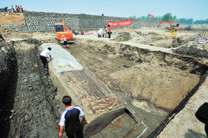 天津市北辰区张湾村明代沉船遗址考古发掘现场