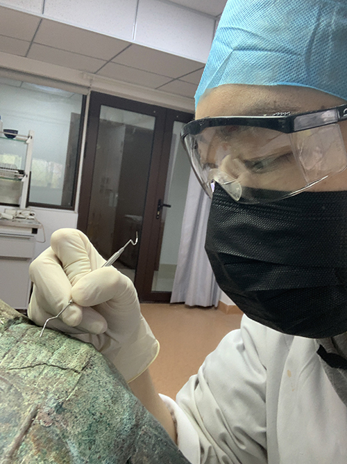 去年8月,化夏被河南博物馆选派到故宫博物院文保科技部交流学习,同时派去的还有另外两个同事,被派送到另外两个不同的部门。在故宫博物院,他跟随国家非遗传承人王有亮学习青铜修复技术。