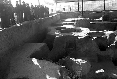 记者在现场看到,遗址上方搭建了棚子,发掘面积相比6月来说增加了一倍多,并且多种遗迹露出真容。据了解,截至目前,发掘面积达1200平方米,共出土5种遗迹,其中窑炉11座,灰坑140多座,灰沟6条,水井30多眼,墓葬20多座。