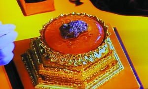 12日上午8时,珍藏有佛顶骨舍利的金棺银椁由南京博物馆迎请至栖霞寺。上午9时许,在海内外108位高僧大德见证下,中国佛教协会会长传印法师等从一套金棺银椁中恭请出佛顶骨舍利,供奉于两个特制的7层楠木刻金莲花须弥座上;从另一套金棺银椁中恭请出了十颗感应舍利以及诸圣舍利等。记者看到,迎请出的佛顶骨舍利浅褐色,呈蜂窝状。